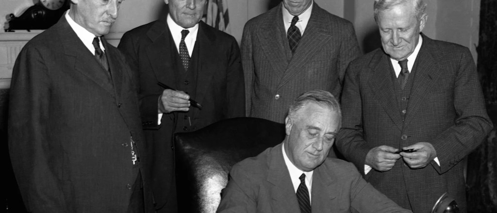 On June 22, 1944, U.S. President Franklin D. Roosevelt signs the G.I. Bill, an unprecedented act of legislation designed to compensate returning members of the armed services—known as G.I.s—for their efforts in World War II.