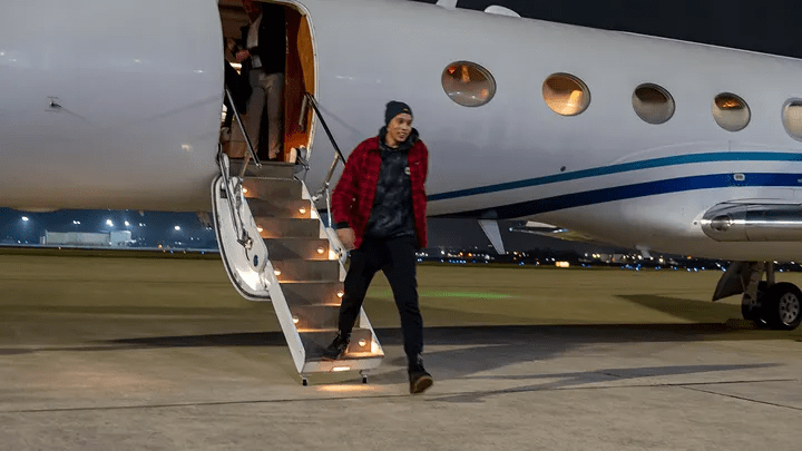 Photo: WNBA star and two-time Olympic gold medalist Brittney Griner sits in the plane as she flies to Abu Dhabi to be exchanged for Russian citizen Viktor Bout, in Russia, Friday, Dec. 9, 2022. (Russian Federal Security Service via AP)