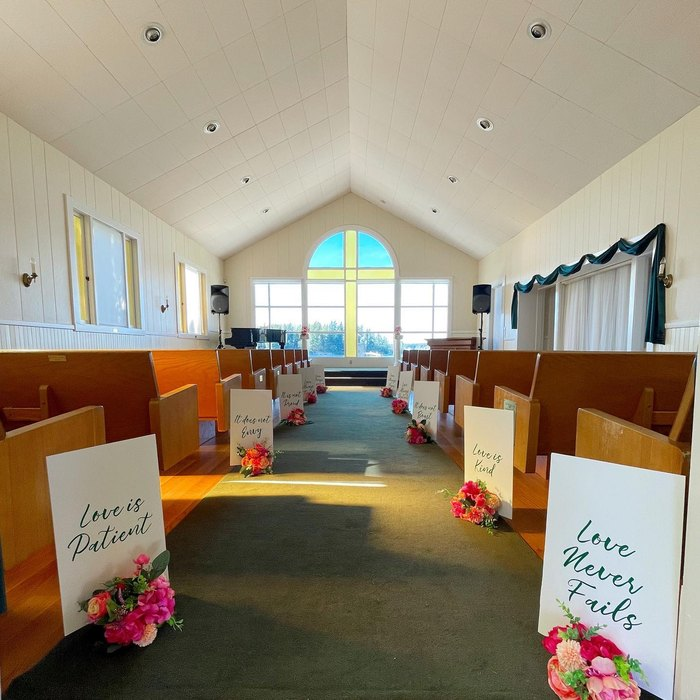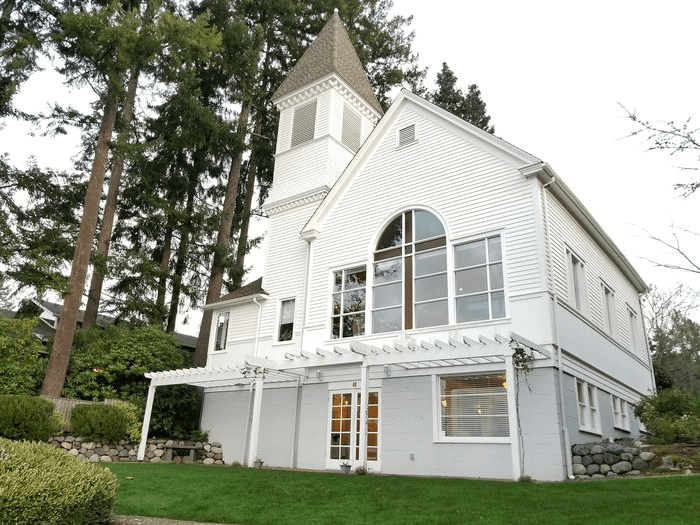 Nestled on the water’s edge in the small community of Fox Island, Washington, with sweeping views of the Olympic Mountains and Echo Bay, you’ll find the most charming little chapel you’ve ever seen. This historic chapel got its start more than 100 years ago when pioneer families from Iowa came to settle in Pierce County, becoming the first permanent colony on Fox Island. They set up and named their church the Congregational Church of Sylvan on an idyllic patch of waterfront land. In 1900 the tiny church was dedicated as The Chapel on Echo Bay, so named for the legend that claims that an echo will resound seven times over the bay before fading into silence. The little white chapel has seen a lot of changes over the years and is no longer being used as a house of worship, but it remains a popular wedding and event space for its romantic charm and beautiful setting.It doesn’t get more charming than this. It’s no wonder the Chapel at Echo Bay has become a popular venue for weddings and receptions.