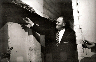 - Assistant Director of the Federal Bureau of Prisons Fred Wilkinson shows the press the desperate state of the prison structure below the cell block. He chipped away pieces of cement which after 50-years had deteriorated and become unstable.