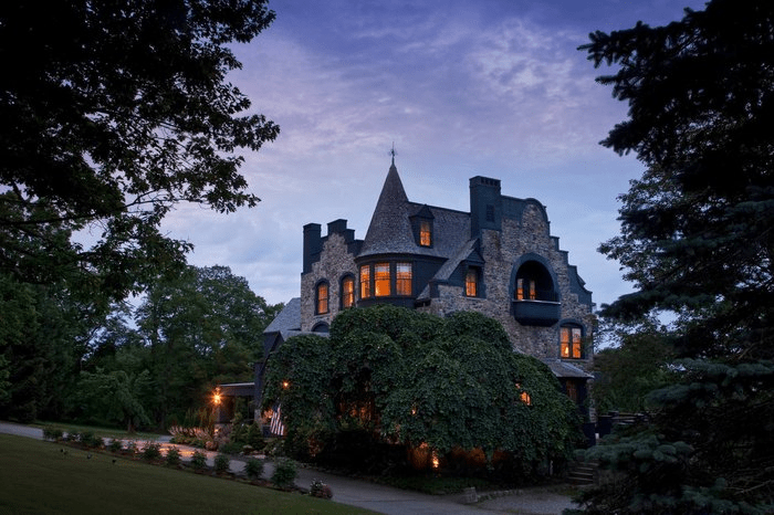 In Washington, Thornewood Castle (known as “the house that love built”) sits on the shores of American Lake in Washington, and it is absolutely stunning. Thornewood’s tale begins with Mr. Chester Thorne, one of the founders of the Port of Tacoma. Chester bought the 400-year-old Elizabethan manor in England and had it dismantled and shipped, brick by brick, to Lakewood to be included in the building of Thornewood. Chester had the castle and gardens built as a gift to his wife, Anna Thorne, and construction took three years to complete.