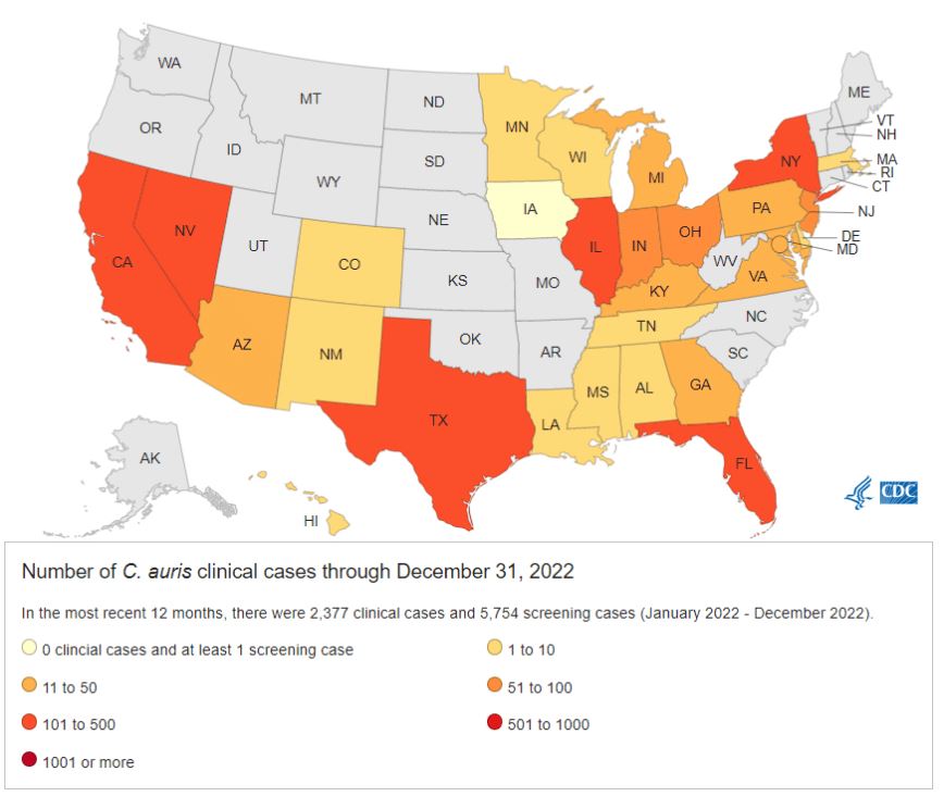C. auris has now been detected in more than half of U.S. states, the new study found.