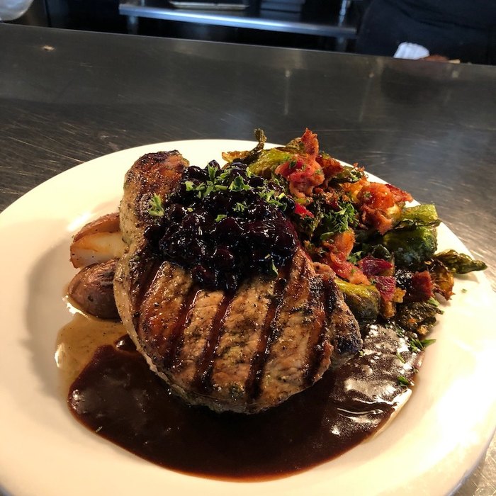 For an entrée, there are options no matter what you are craving. The menu features dishes like bistro chicken, macaroni and cheese, filet mignon, Hagerman trout, and blueberry pork chop. No matter what you choose, everything is delicious.