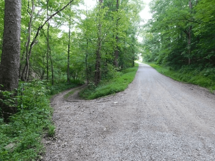 To reach the ghost town, you’ll head down Rock Camp Rd., just off of King Hollow Trail. If you don’t want to hike through Moonville as well, you can park near the intersection of King Hollow Trail and Rockcamp Road.