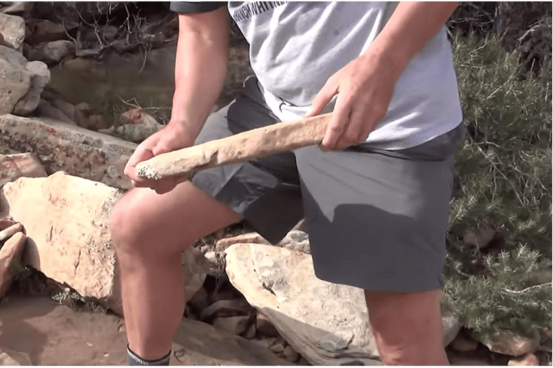 It’s easy to begin stacking rocks with a flat foundation, he explains