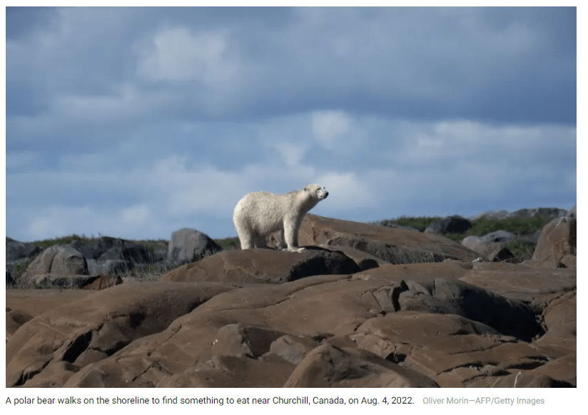 t’s not easy to swim 175 km (109 mi.) when you’re starving to death. It’s not easy either to try to survive when you’re shedding body weight at a rate of 1 kg (2.2 lbs.) a day. And it might be hardest—or at least most tragic—of all if you’re a nursing mom and your calorie intake has dropped so low that you can no longer produce the milk you need to care for your young. As a new paper in Nature Communications reveals, all of those challenges and more are facing the world’s polar bears, thanks to vanishing sea ice in our warming world, denying the animals a platform that they need to hunt for seals. If the trend isn’t reversed soon, the estimated 26,000 polar bears in the wild could start to lose their hold on survival before the middle of this century.