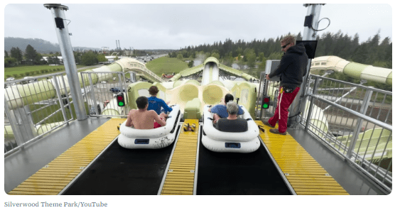 There are two lanes so you can not only race against friends and family but you are also racing against the clock. It’s designed so you race down the water coaster as an eagle going after its prey.