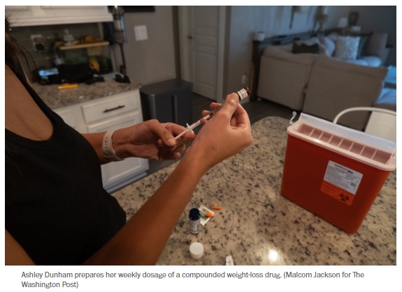 Off-brand versions of GLP-1 weight loss drugs made by compounding pharmacies are often more accessible, but not without risks. by Daniel Gilbert and Teddy Amenabar The pitch is all over social media and irresistible for many people desperate to lose weight: Get an imitation version of pricey, hard-to-find drugs like Ozempic or Mounjaro for a fraction ofContinue reading “Healthcare Awareness Mondays: What to know about cheaper, imitation weight-loss drugs”