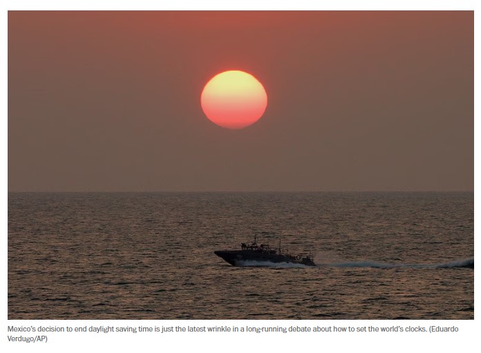 by Dan Diamond and Maria Gabriela Martinez Most Americans on Sunday will “spring forward,” the annual ritual of advancing our clocks by an hour in a bid to capture more sunlight — while dealing with the inevitable grogginess and health risks that result. But most Mexicans won’t adjust their clocks this spring after their country ended daylight savingContinue reading “Mexico got rid of daylight saving time. Should the U.S. end it, too?”